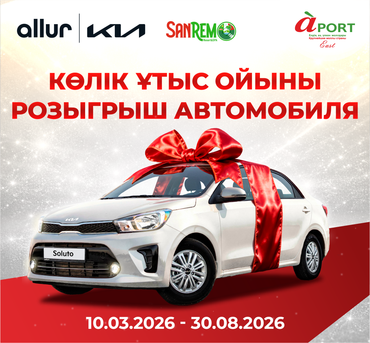 - Акция проводится на территории AportMall East по адресу: Республика Казахстан, г.Алматы, Медеуский район, Кульджинский тракт 106, «Aport Mall East». Подведение итогов будет проводиться в очном формате, присутствие Участника обязательно.